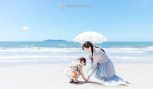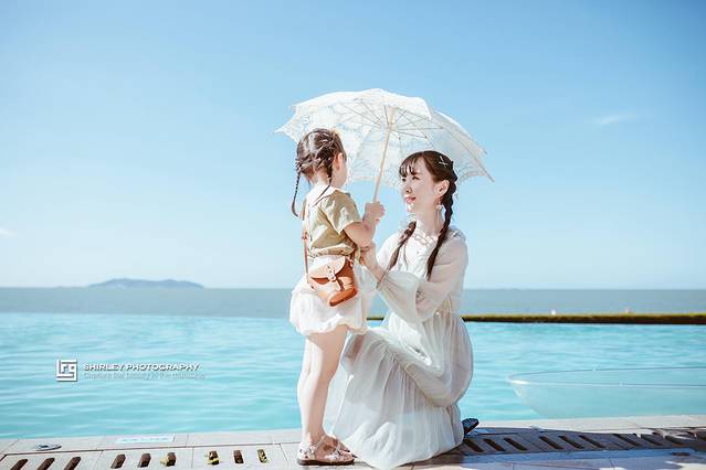 比江浙热得早,但是极端温度没有包邮区那么高。7月底的茂名温度在32—35度之间,阳光毒辣,但是站在有树荫的地方还算能接受,泡在水里最是凉快。空气里湿度非常高,对齐刘海有着满满的恶意。建议不管大人小孩,都多带1-2套衣服,以备不时之需。