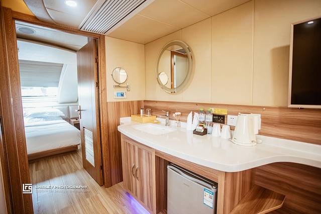 餐厅宽敞大气,通透气派,可容纳300人同时就餐,全方位的观海视角,若是运气好遇到晚霞天气,那用餐体验绝对可以值回票价了。