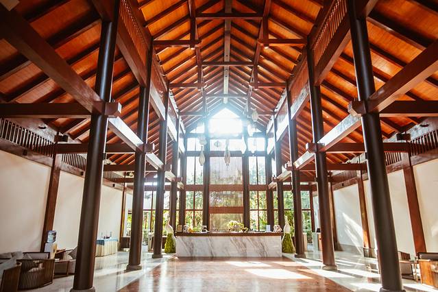 挑高气派的新中式风格酒店大堂,大量木质元素的运用,传统与时尚并存,每一平米都是精致与典雅。非周末的午后到达时,客人不多,前台也训练有素,我们很快就拿到了自己的房间。到了酒店就不用担心自己的行李了,酒店的私人管家会派行李车将客人与行李一起接到自己的房间门口。