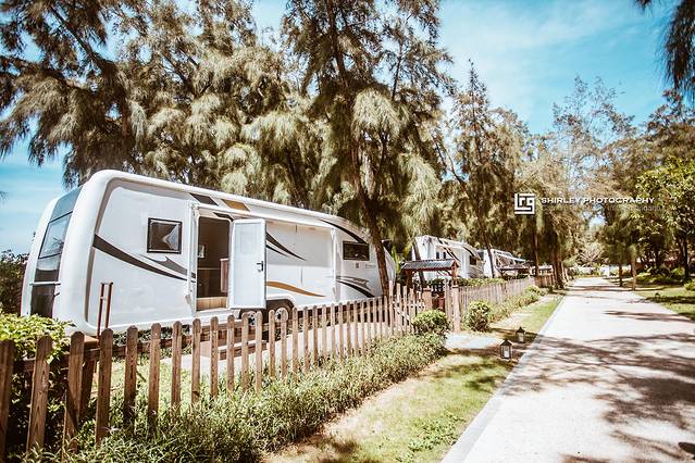 浪漫海岸度假区的面积之大,远超了我们想象。好不容易把酒店逛遍后,乘着酒店的免费接驳车,我们来到了酒店另一端的西海岸,这里更为清静自然,可打卡的地点也更多。第一站房车营地,两排崭新的房车,齐刷刷地停靠在高大茂密的棕榈树下。