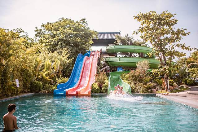 从空中俯瞰就很刺激的七彩滑道,因为有身高需求,比较适合大朋友。在池边看着其他人从高处滑下溅起的水花,也觉得代入感超强了。胆大的朋友,记得过来试试哦!