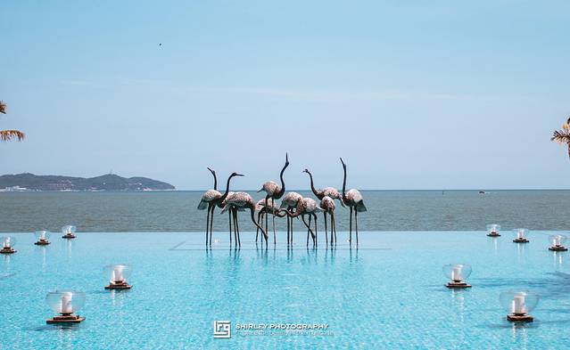 巴厘岛风情的无边际泳池,直面无边宽阔的大海。而在无边泳池,你能体验到“碧海蓝天近在咫尺”之感,不仅能在泳池自在畅游,还能远眺整片蔚蓝大海,似乎所有的烦恼在此刻都能被抛出脑后。泳池周边花草树木环绕,就像一个小巴厘岛;难怪有人说,茂名的浪漫海岸似乎吞下了整个东南亚。