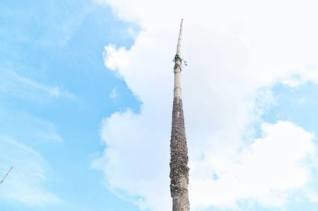 天渐渐亮起,应该是挂满紫菜的杆子,也慢慢显出模样。