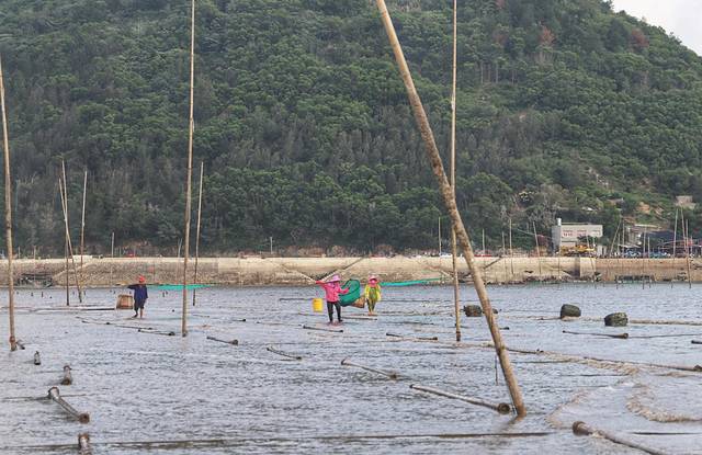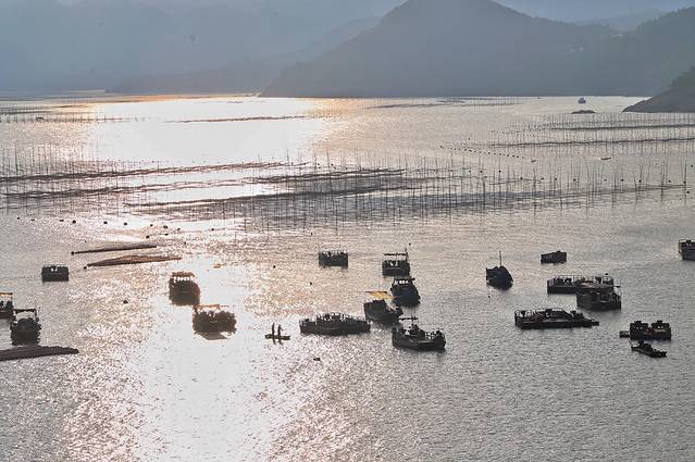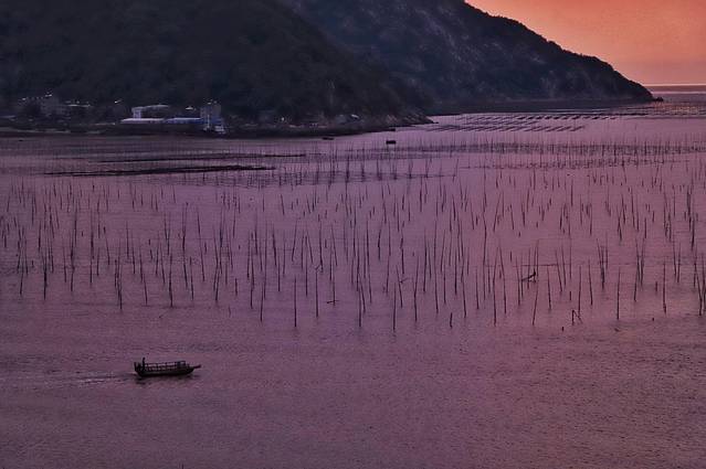 忙碌了一季的人们,种下的紫菜,也开始为人们所见,看似参差不齐,却又井井有条理。