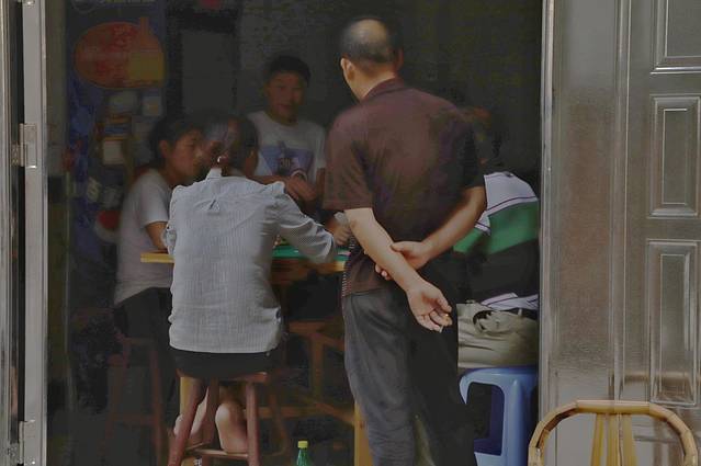 老年活动中心大门敞开,已经有观战麻将大战的人在专注着。