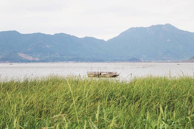 就这样穿过青石板小路,出了巷口眼前竟然是一片开阔。成片青草地外是船只在等待号令。