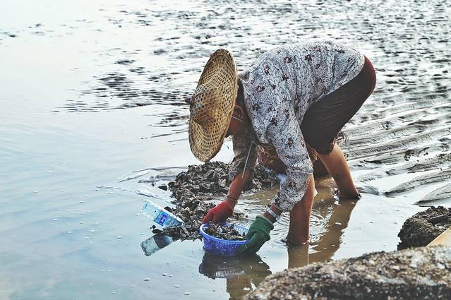 虽然平常也没少见牡蛎,但是接过洗牡蛎的大妈,递过来的一颗,撬开生着吃,都带着意想不到的几分鲜。