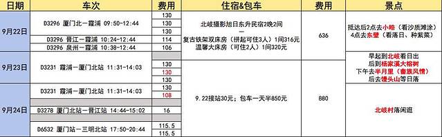 我们动车于22日中午抵达霞浦,离程时间为24日中午11点左右,所以实际我们在霞浦只有2日,在房东与司机小哥建议下,最终敲定了行程如下。