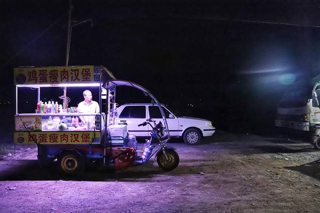 据前一晚和房东的打听,我们估摸着五点起床,摸黑沿着村子里的小路前往北岐村头走去。走到沿着山体修缮的坡上,等待日出。路上要是担心饿,还有一辆贩卖鸡蛋汉堡的小车,一盏明晃晃的光在等着你。