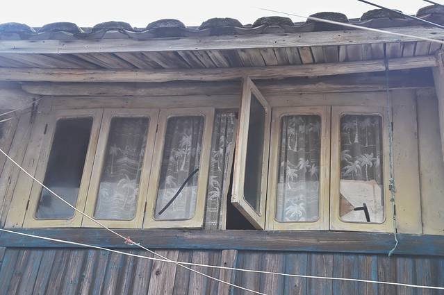 听见了老旧木窗在二楼被风吹起,唱起了吱吱呀呀的歌,纱帘摇曳好像随时都有姑娘探头远眺。