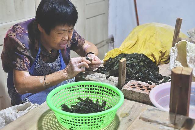 而在拐角的小房子里,又拜访了正在打着海带结的阿嬤。看她苍老的双手依然灵巧,眯着的双眼依然尖锐,大概这就是霞浦人与生俱来和海搏斗的不服输精神吧。