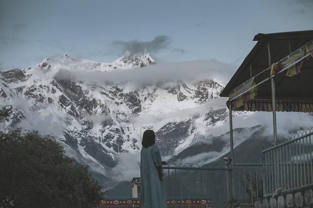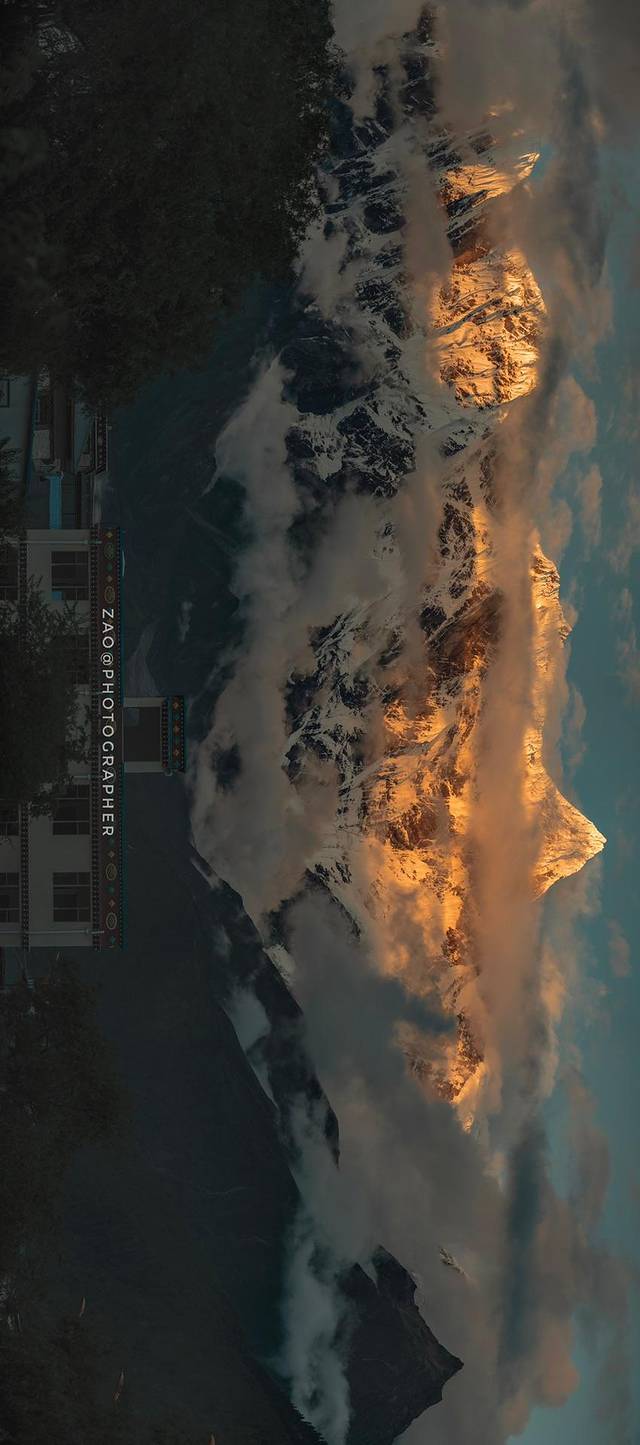 虽然这次没能躺在藏族小屋的天台上仰望浩瀚的星河,但能与你一起依靠在天台边,看着日照金山的南迦巴瓦峰这难得一见的美景,也是一种幸福。