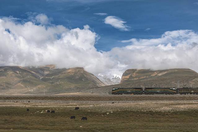 和青藏铁路并驱在青藏高原,旁边无数座雪山高山,天气忽阴忽晴忽雨,海拔均在4000米左右,时不时会看见国家野生保护动物藏羚羊,这就是最美的青藏线。