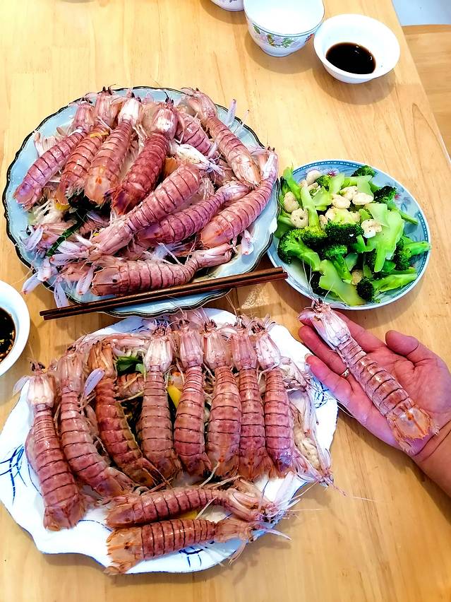 手掌大小的皮皮虾,个个鲜龙活跳。28元一斤,买5斤。回来大快朵颐。