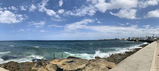 从老城区观光景点处可以径直穿行到滨海大道边,日光下的加勒比海粼粼呈现