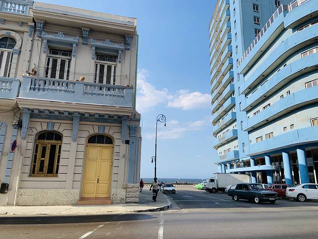 【消费】就餐来说,大的酒店里饭店点餐消费肯定是贵的,小店就自己找。小店的消费就一份套餐$2,酒店餐厅同样餐$20……我是在民宿附近溜达看看住宿范围内的餐厅饭店小吃店小摊,用谷歌地图帮忙,提前看好比较了一下找了一间本地的,看着靠谱试了也OK的,就接下来的城内行程都在那家用餐,是个家庭餐厅。(小提示: 别走夜路,大道上哈瓦那住宅区的建筑都高高的,街道上虽然没什么人、零散的路人看起来都各忙各的,但也没什么灯,挺空旷的拐个弯消失了也没人看得着的…)
