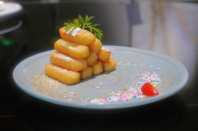 炸牛奶:外皮很酥,里面软软的,要趁热吃口感会更赞。