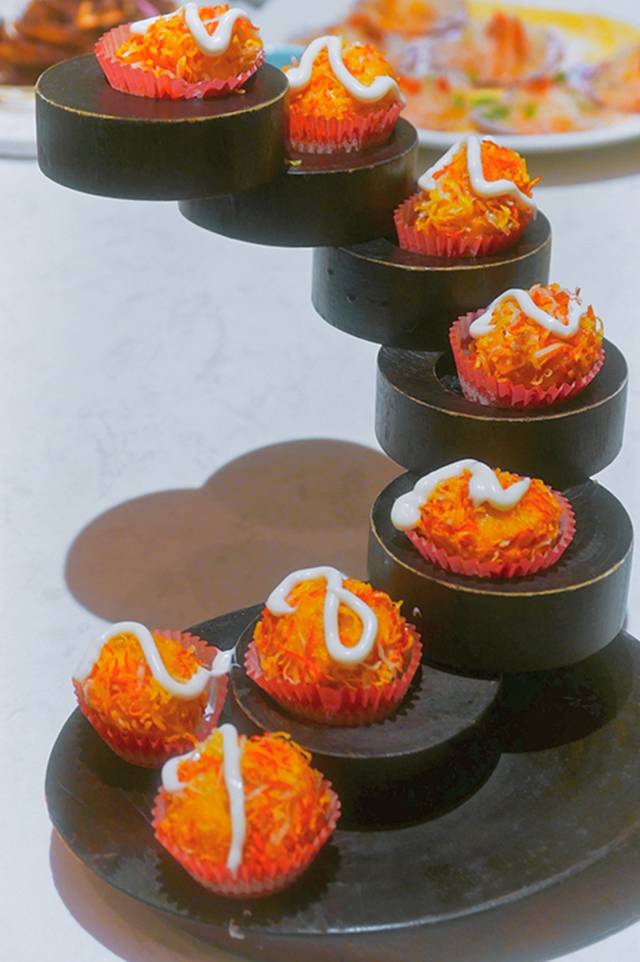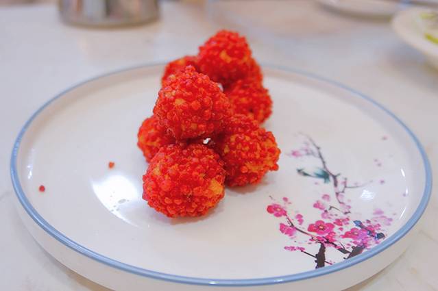 步步高升虾球:摆盘格外精致,上面点缀了芝士,外皮酥脆,里面的虾肉Q弹。