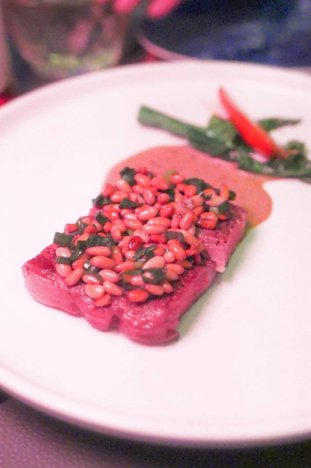 山楂鹅肝:摆盘充满高级感,上桌的时候雾气缭绕,如同飘着仙气,酸甜的山楂外皮包裹着入口即溶的鹅肝,回味悠长。