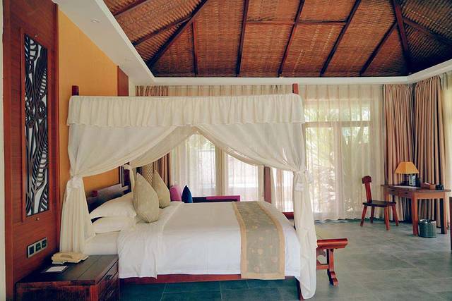 🏨整座酒店由108栋巴厘风情园林别墅组成,踏入酒店,一排排独立别墅院落有序相连,茂密热带植被围绕其中,湖水、草坪、可谓一步一景,到处都流淌着舒适宜人的热带气息,恍惚中,有种到了巴厘岛的错觉。