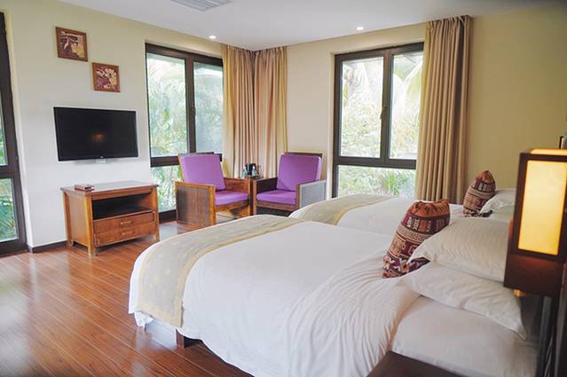 住宿可以选择景区的“雨林1号度假酒店”,一家建在热带雨林里的酒店,与生态融为一体,远离尘世喧嚣,酒店设有养生餐厅及24小时开放的泳池和养生温泉。