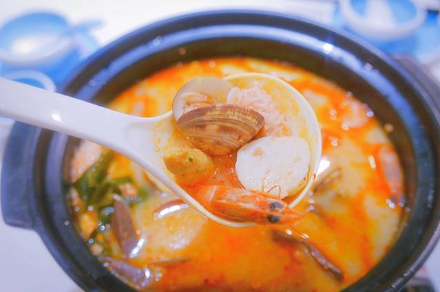 海南必吃海鲜糟粕醋:里面加入了虾类、贝类、海鲜丸及蔬菜类等,煮出来的食材都很好吃,口感酸酸甜甜、带点微辣,可口又开胃。