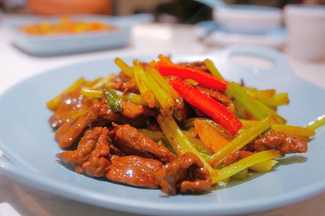 海南香芹爆炒黄牛肉:很有营养价值的搭配,香芹本身很提味,爆炒后的黄牛肉比想象中更为香嫩。