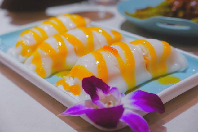 桂花芒果卷:我个人最喜欢的一道甜品,光看着就无比诱惑,我们这次点了两份,做法很创意,里面的芒果也非常新鲜好吃。