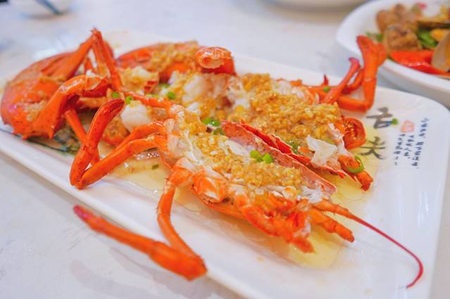 蒜蓉蒸龙虾:龙虾Q弹紧实,一定要趁热吃,口感会更佳哦,我们人少,挑了一只小的。