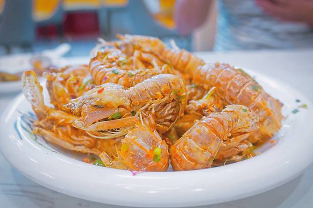 贵妃笑品虾:外皮酥脆,咬开后里面的虾肉超鲜。