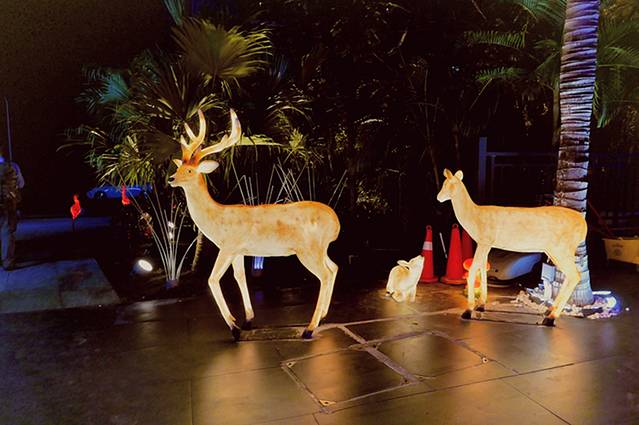 环境:穿过院子前的潺潺流水与喷泉,浮现眼前的是一座颇具小清新气质院子,主色调为简洁的白,热带绿植环绕,夜晚淡蓝色灯光灯光的照映下,格外幽静雅致。