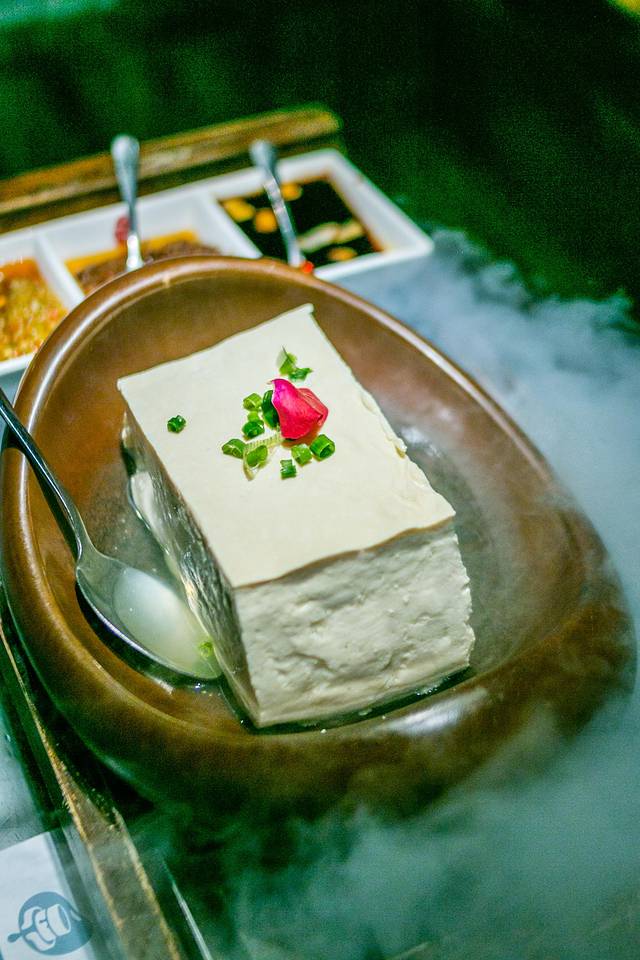 每桌必点,最出名的招牌菜当然是【一块豆腐】,纯手工磨制,能够保证营养元素都不会流失,手工科学的做法让营养价值达到最高,上来发现好大一块!浓郁的豆香味和配制的三种酱料超级诱人。