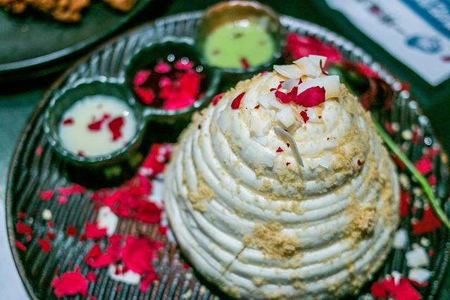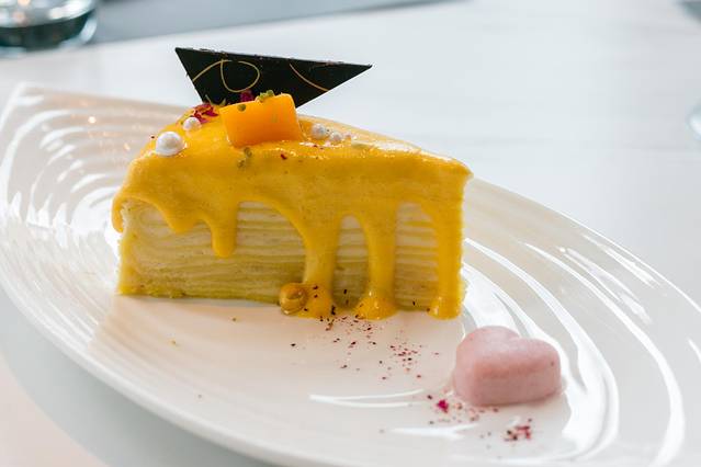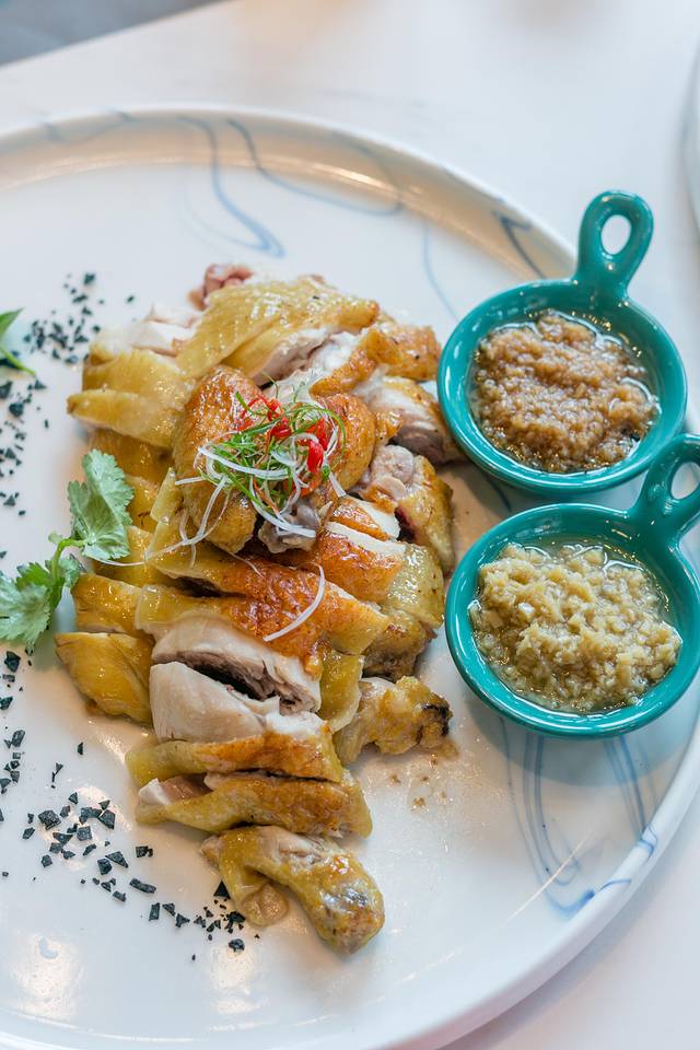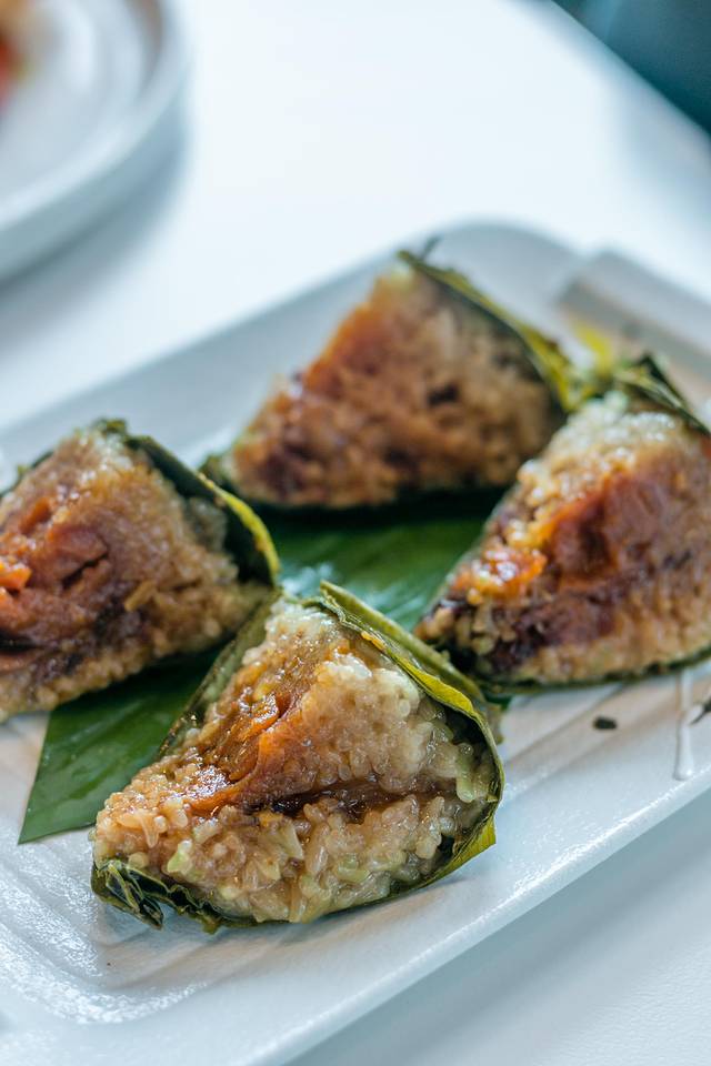 本地特色文昌鸡配上秘制酱料,液氮承装上来,仪式感满满。刚刚吃了蛋黄蟹,不得不点名一下这个定安黑猪蛋黄粽!糯米配上农家自养的黑猪肉,咸肉粽子入口就想再来一个!饭后再来两份甜点,给这趟「寻味之旅」画上个圆满的句号。