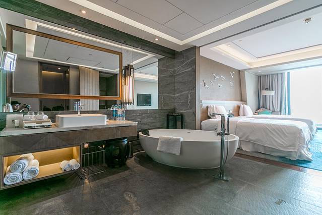 毕竟是品牌酒店,卫生自然是非常过关的,豪华房间内还有一个超大浴缸,拉开窗帘便是超长海岸线,在内陆城市已经被雾霾侵占的12月,这里依然空气清新,格外明朗。