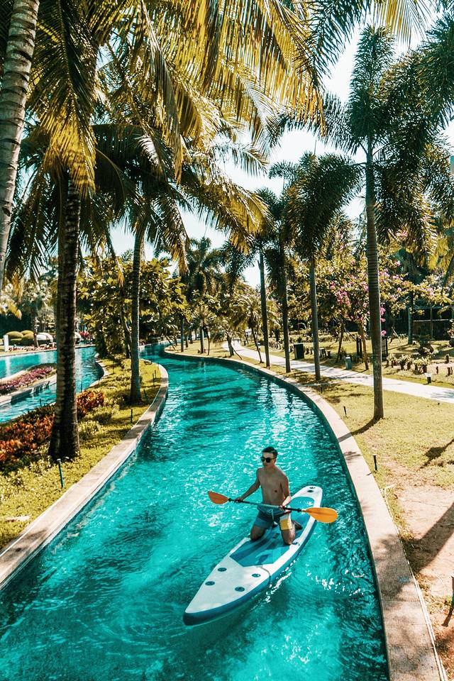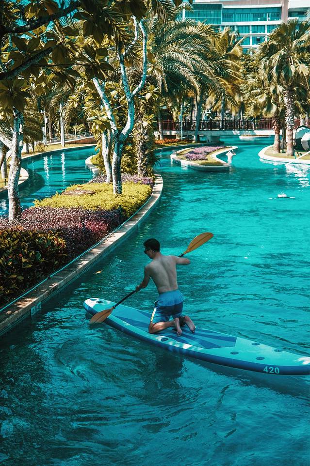 来了这么多次三亚,打卡了不少酒店,竟然错过了海棠湾民生威斯汀这个宝藏酒店,超大河道泳池绝对一眼爱上,河道两旁栽满椰树,划皮艇穿越整片椰树林,仿佛穿梭在热带雨林。不能出国的日子,在三亚直接过足瘾!相比沙滩,这里更像是私家后花园一般清净自在。
