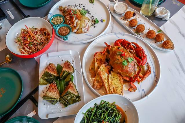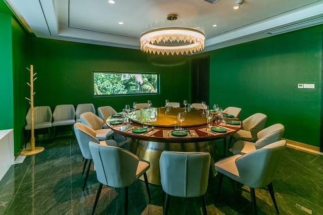 先看下面这几张图,你能猜出来是什么餐厅么?室外Tiffany蓝色,室内是将墨绿色铺满整个店面,在绿色海洋三亚,代表着希望、活力、健康的绿色总是让人心生好感,轻奢感装修,就餐环境真的太可!揭开谜底,这是一家专门吃螃蟹的餐厅~
