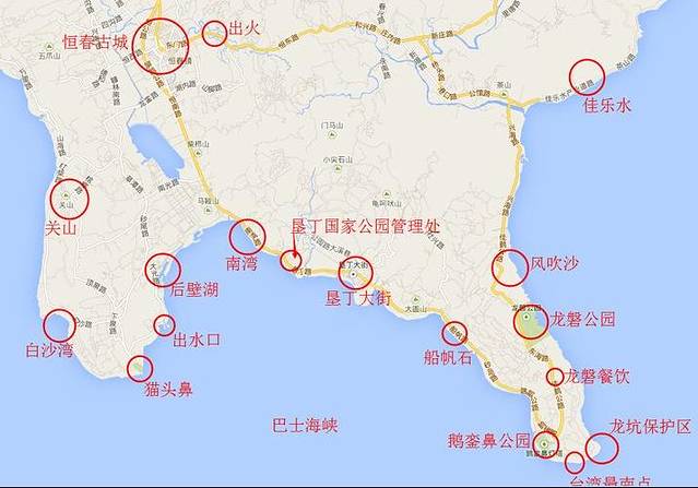 下图是 垦丁 的主要景点,基本来这里的人,都是玩这些地方