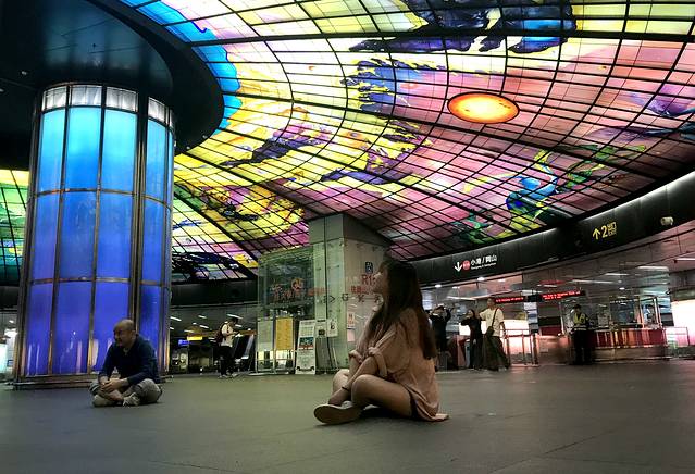 美丽岛捷运站,不亏是最美的地标了,好多人在这里拍照停留,我18-200的镜头,要完全躺下,才能拍下下图的角度~