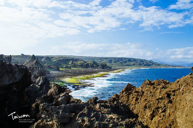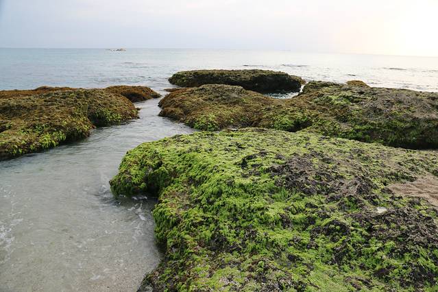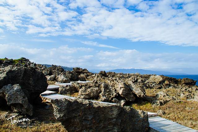 放眼看过去,远处的石头,全部是珊瑚,因为地质运动抬高裸露表面,龙坑这里体现最为集中和最大规模,所以 垦丁 国家公园把这块区域划分为保护区。