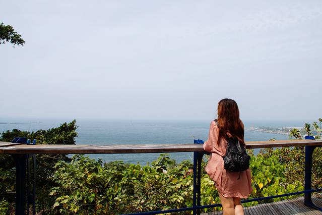 从领事馆下来,继续骑车,来到西子湾风景区,这里有一个大学,我们一直开到海堤边上