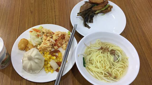 入住后,因为已经中午1点了,我们赶紧想在酒店楼下找点吃的。