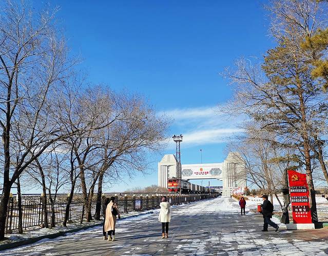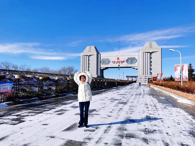 满洲里国门,位于满市西部中俄边境处,国门总长105米,高43.7米,宽46.6米,国门后有41号界碑。