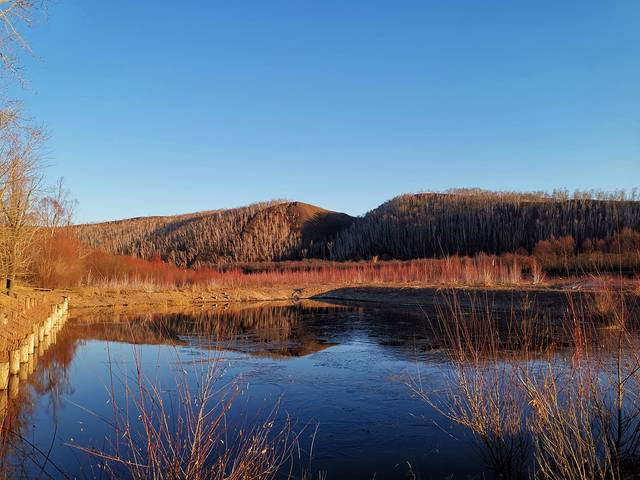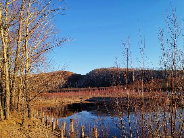 额尔古纳国家湿地公园是4A级景区,距额尔古纳市拉布大林镇距离约十几公里。到景区发现没人也没车,到了售票处一看关门了,心都凉了半截,打电话问景区工作人员,回复说今年由于疫情影响,游客减少,过了国庆节景区就关闭了。哎,真是一声叹息啊,走哪里哪里关门,在额尔古纳居然处处碰壁。又正好看到景区大门没关,这是赤裸裸吸引我们进去啊,跨越了几千公里过来,不看也不甘心,管他的,先往里走走再说吧。景区没人管真是一片荒凉,杂草丛生,哪有水草肥美、物种繁多的景象啊。越往里走越慌,还看到指示牌有”野猪林“,吓死去,荒无人烟出来一只野猪怎么办,三个女的怕是打不赢,心里想法颇多,自己吓自己果然最可怕。走到河岸边,确实也没有很好的景色了,草草转了一圈就出来了,也算到此一游吧。