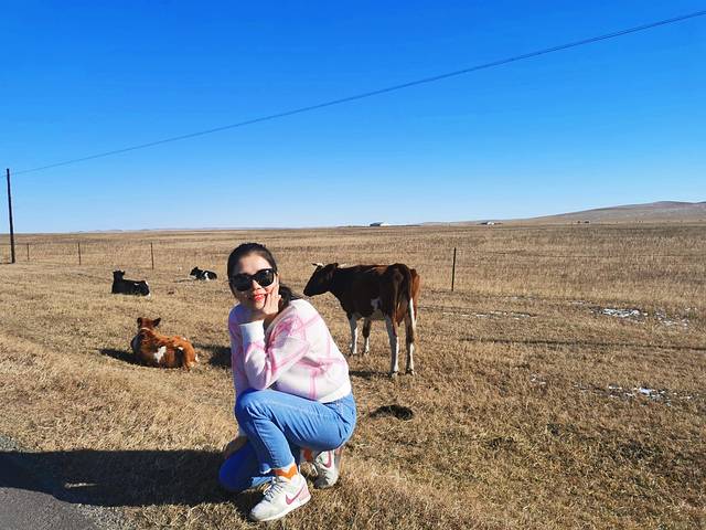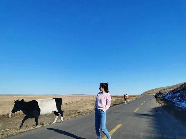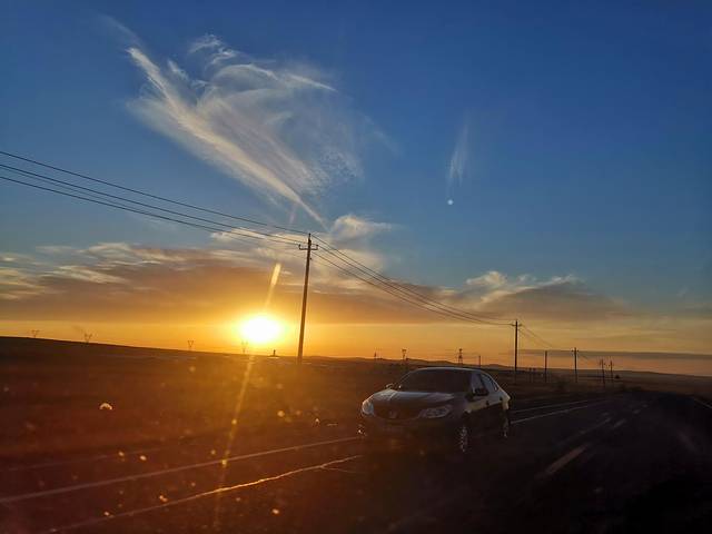 到了傍晚时分,草原的落日余光特别刺眼,戴着墨镜都刺的慌,突然出现在视野中的路人吓了我一跳,好在车速慢。路上有一个限高2米的栏杆,我远远瞧着感觉过不去,龟速行驶生怕撞上栏杆,她俩都笑话我太小心,然后璐宝说“这么高,姚明都”,话没说完我们接就话“那姚明还真过不去”,哈哈,一路欢声笑语开启互怼吐槽模式,三人轮流开了一段路,5个小时终于到了阿尔山市。