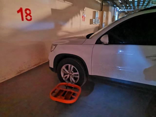 第二天准备开车出去,一看车窗贴着一张纸上边写着“私自停车罚款100元”,吉宝说走走走,管他的罗。我绕到驾驶位一看不行啊,车胎上一把大锁呢。打纸上留的电话也打不通,一边走还一边嘀咕就10块停车费犯得着锁车吗。走到车库口定睛一看,原来写的是“随意停车罚款100元”,这下我们三面面相觑了,眼神真不行。