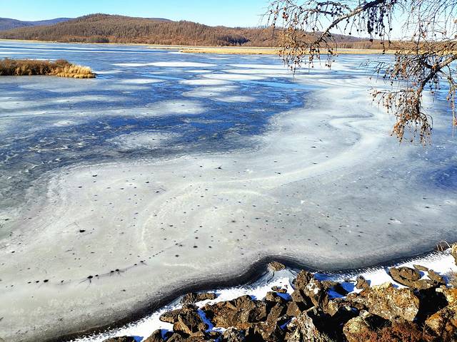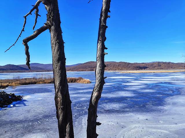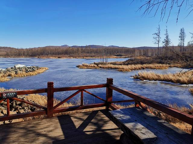 杜鹃湖景区应该是此行在阿尔山国家森林公园中最美的景点了吧,湖水都冻住了,但又不是单调的白色,蓝白相间,相得益彰的美,