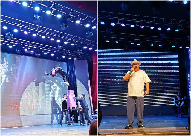 之前印象中二人转是一男一女手拿扇子、手绢,边走边唱边舞,是一种风趣幽默的表演形式。现场呢四五个台柱子轮流登场,一个表演完了另一个就捧哏当配角,里面的一些节目也颇有技术含量,口技、模仿秀、唱歌、乐器秀等,但总体来说过于接地气了,好多东北方言笑话我们都听不懂,抓不着乐子。话说大俗大雅,这种表演俗气颇多,加之时不时冒出的黄段子还有被要求一直不停鼓掌,我们感觉水土不服了,后悔没去看下高雅艺术的。