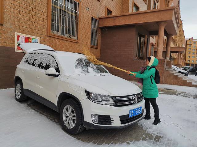 车子停在外边落了一层厚厚的雪,没有称手的除雪工具,璐宝借了旁边搞卫生阿姨的扫把轻轻扫掉玻璃上的雪,笑死了。