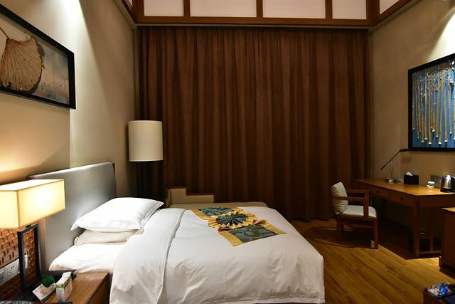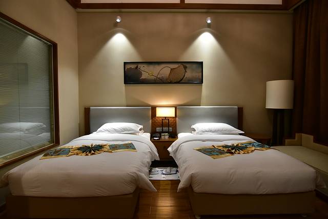 酒店周围没有居民区,夜晚非常的安静,山里空气特别好,绝对好睡眠,把窗帘拉好一点不透光,入眠很容易。晚上休息好,第2天去逛景区的话精力充沛。