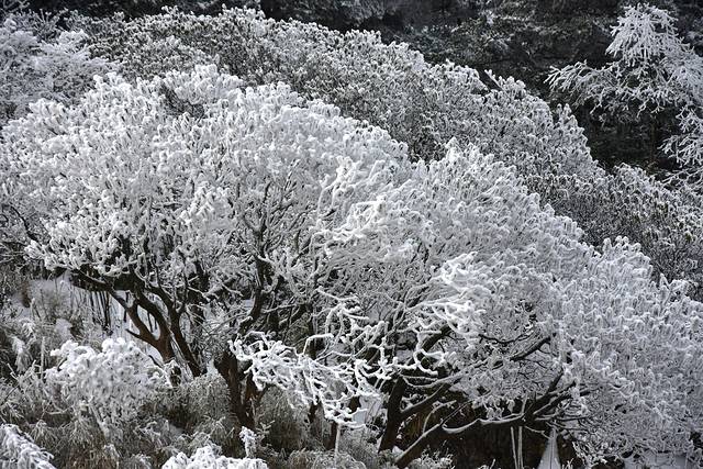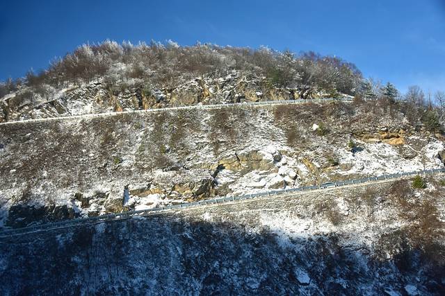 冬天的神农架是很美的,我们坐着旅游大巴,顺着S型的盘山公路,开往景区,大巴有装上防滑链,行驶速度不能太快,冬天冰天雪地,路面很滑,坐在窗边看风景,只觉得路途惊险,窗外的风景也格外美丽,特别是穿过一些有雾凇的路段,那就是童话世界。
